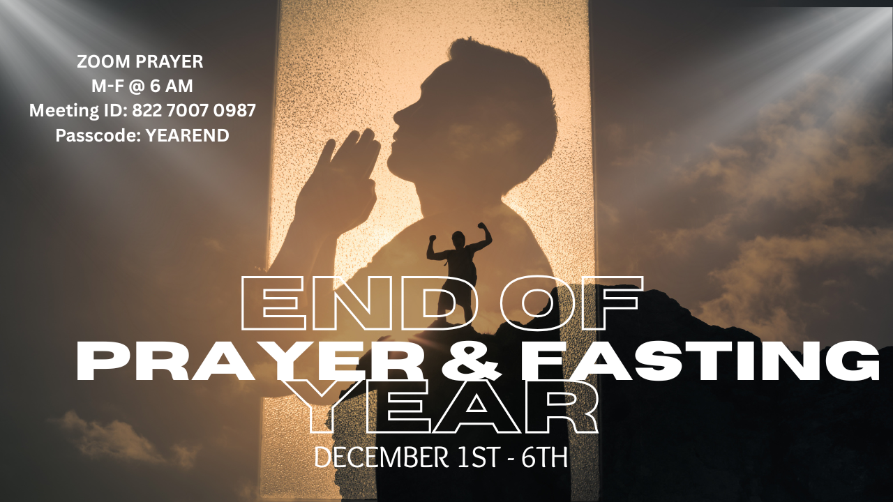 As we close out 2025 and prepare to step into a new year, we are setting aside days of fasting and prayer to seek God with hunger and expectation. This is more than a tradition, more than a discipline, it is a holy moment to reset our hearts, renew our strength, and realign our spirit with the heartbeat of God. Whether this year lifted you higher or stretched you deeper, this is your moment to pause before the Lord, listen for His voice, and position yourself for everything He desires to release in the year ahead. Each day will include a focused theme, a short devotional, and a prayer target to lead you deeper into His presence and purpose. Let’s believe together for fresh fire, personal awakening, breakthrough in our homes and church, and a powerful outpouring of the Holy Spirit as we humble ourselves and seek Him with one heart.